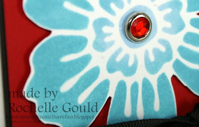 Arielle over at Colour Q Challenge has another great color combo this week for her 17th challenge. The colors are Real Red, Bashful Blue, Taken with Teal, Basic Black and Whisper White. What fun bright colors to work with!